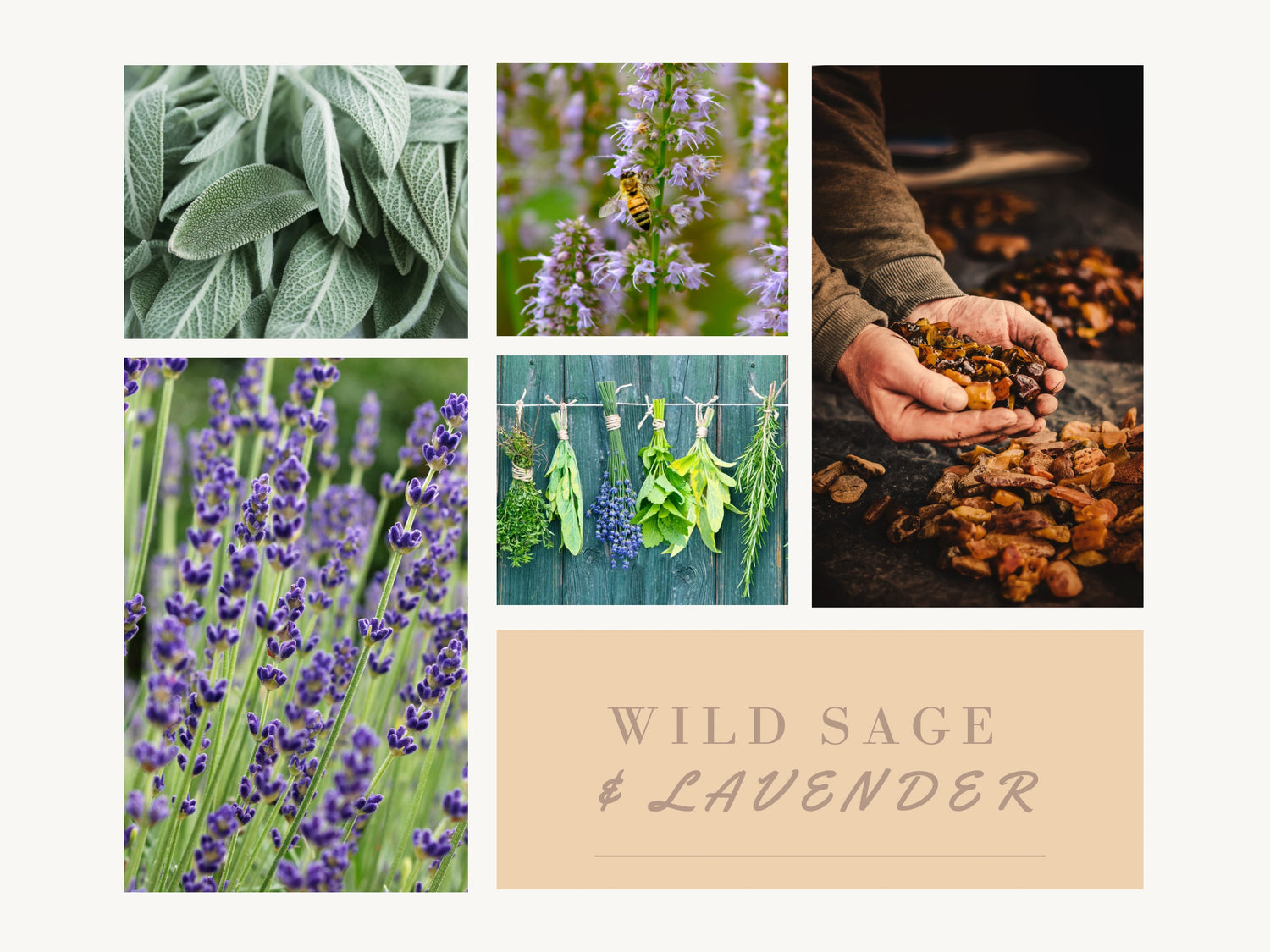 Wild Sage & Lavender: Top notes of herbs, lavender, and rosemary create a refreshing and calming aroma, while the mid notes of wild sagebrush, patchouli, and hemp grass add a touch of earthy and grounding scents. The base notes of amber, musk, and dried bark provide a warm and comforting finish.