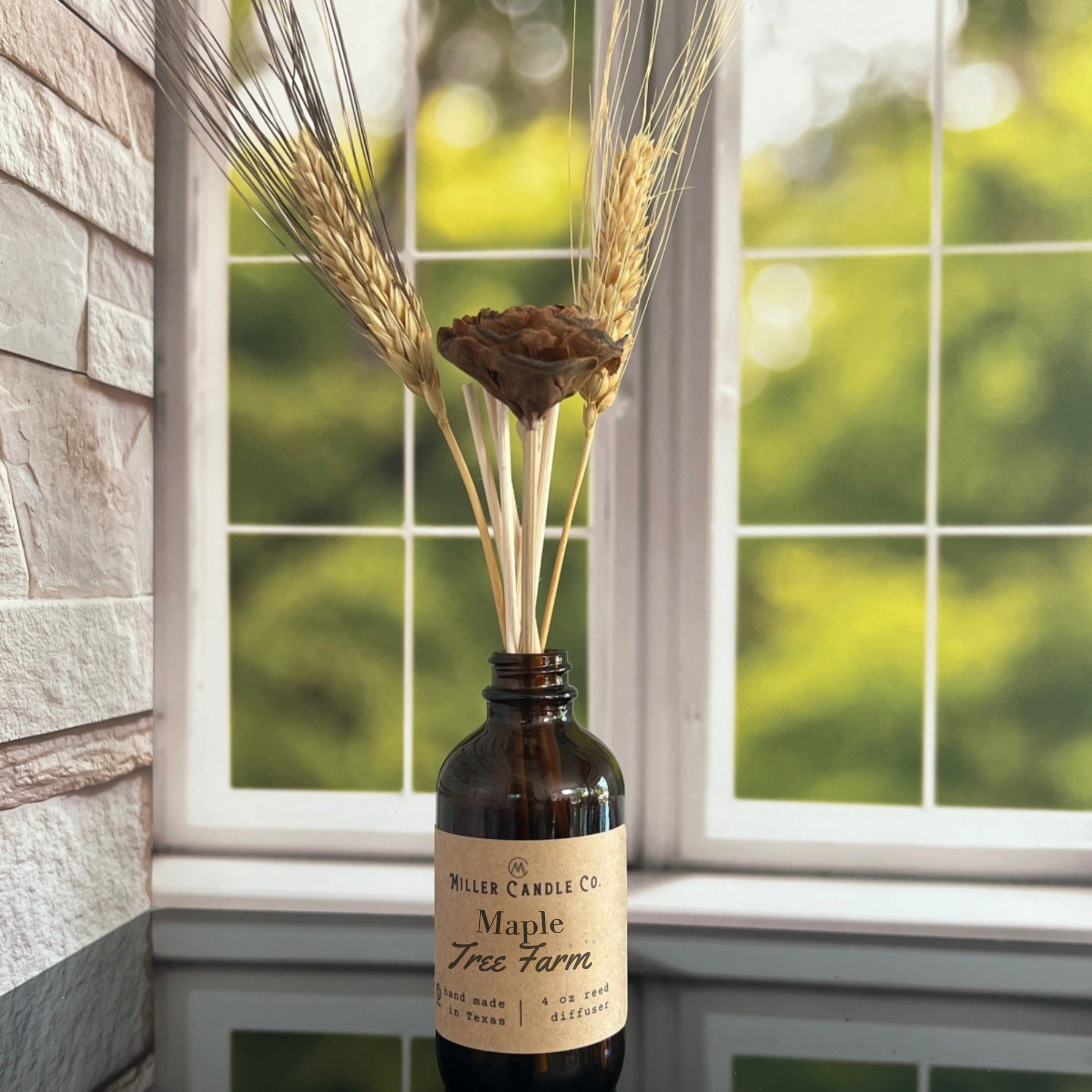 Hand-poured in Texas 🇺🇸, each diffuser features an amber glass bottle and includes 5 natural rattan reeds, 1 cedar rose, and 2 wheat stalks, adding an earthy, seasonal touch. Packaged in a sleek black gift box, it’s perfect for homes, gifts, or lifestyle shops. Our phthalate-free, vegan, and cruelty-free formula provides a clean, non-toxic way to scent spaces — no flame required.